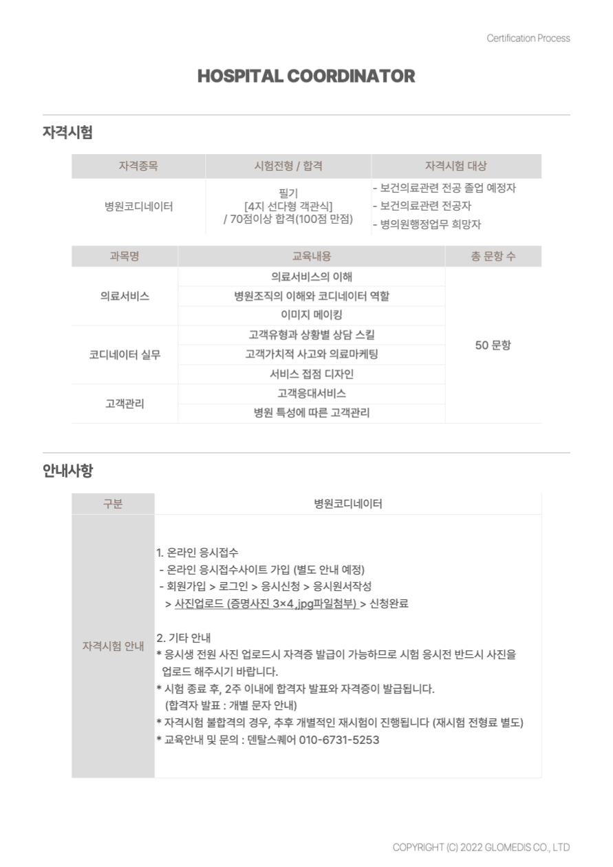 환자 응대 및 병원 서비스의 질을 향상시킬 수 있는 코디네이터로 성장하도록 돕습니다.